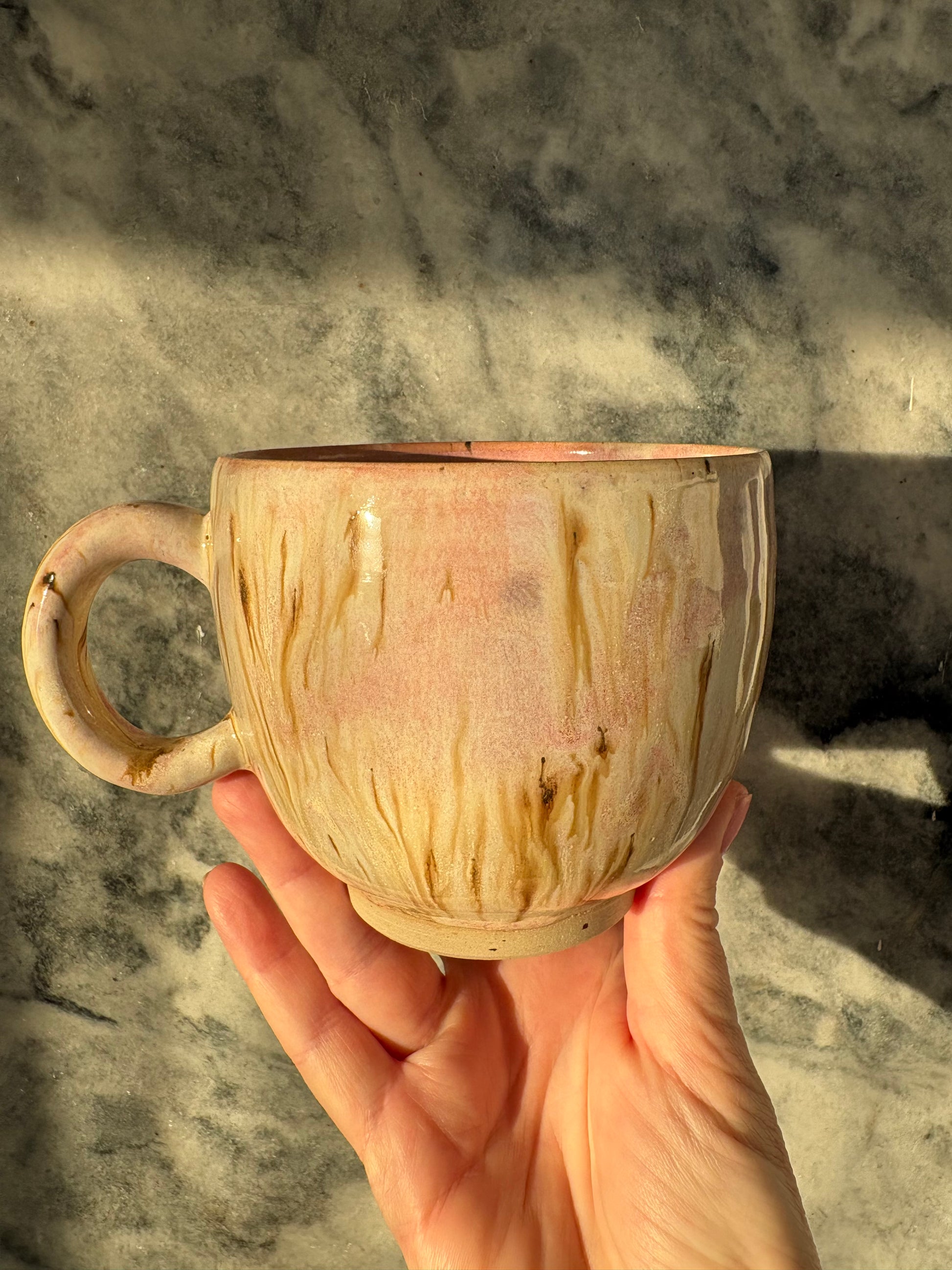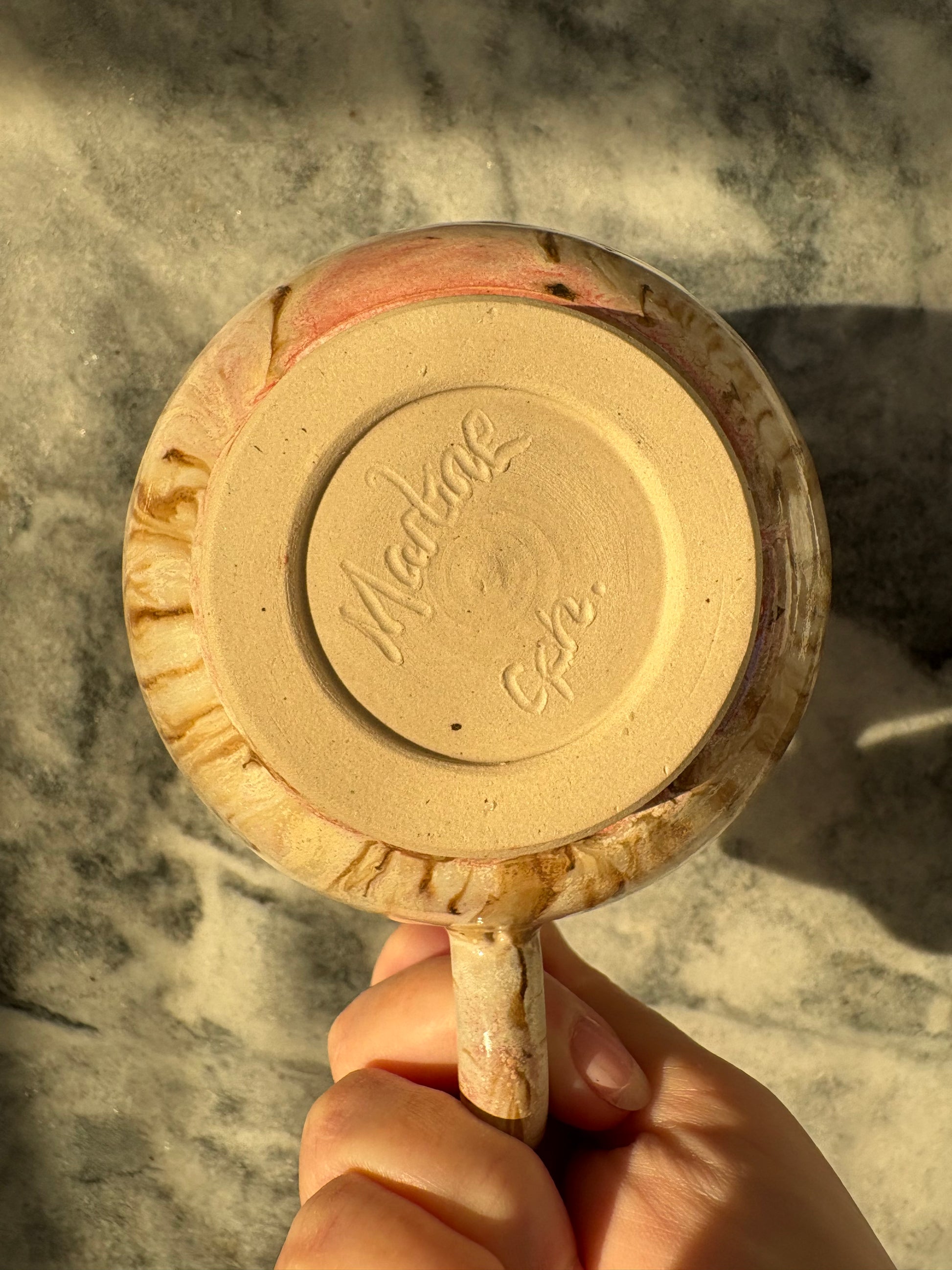 Stor og lækker balje med hank, drejet i lys ler. Til den store kop te eller kaffe eller alt muligt andet.