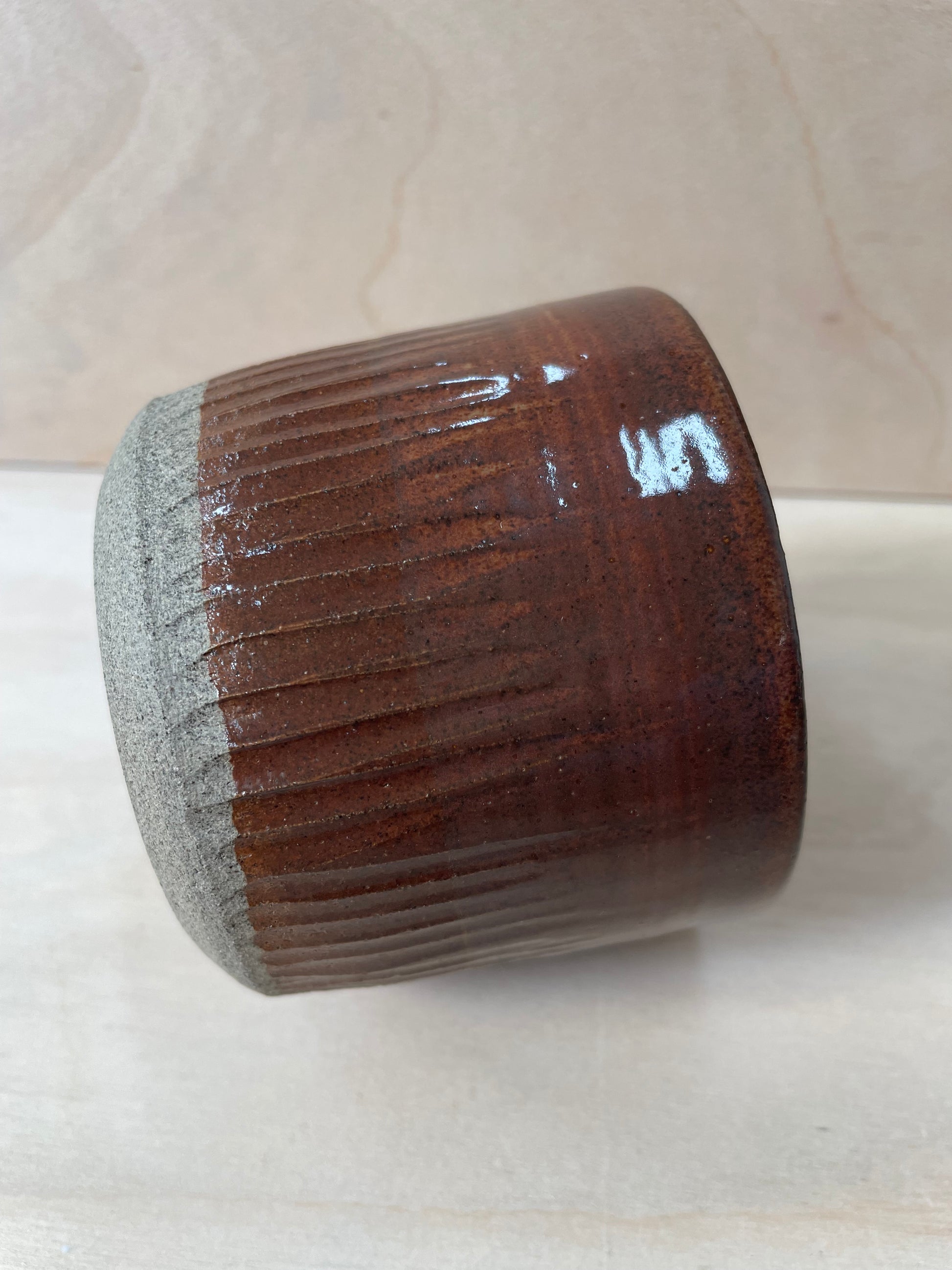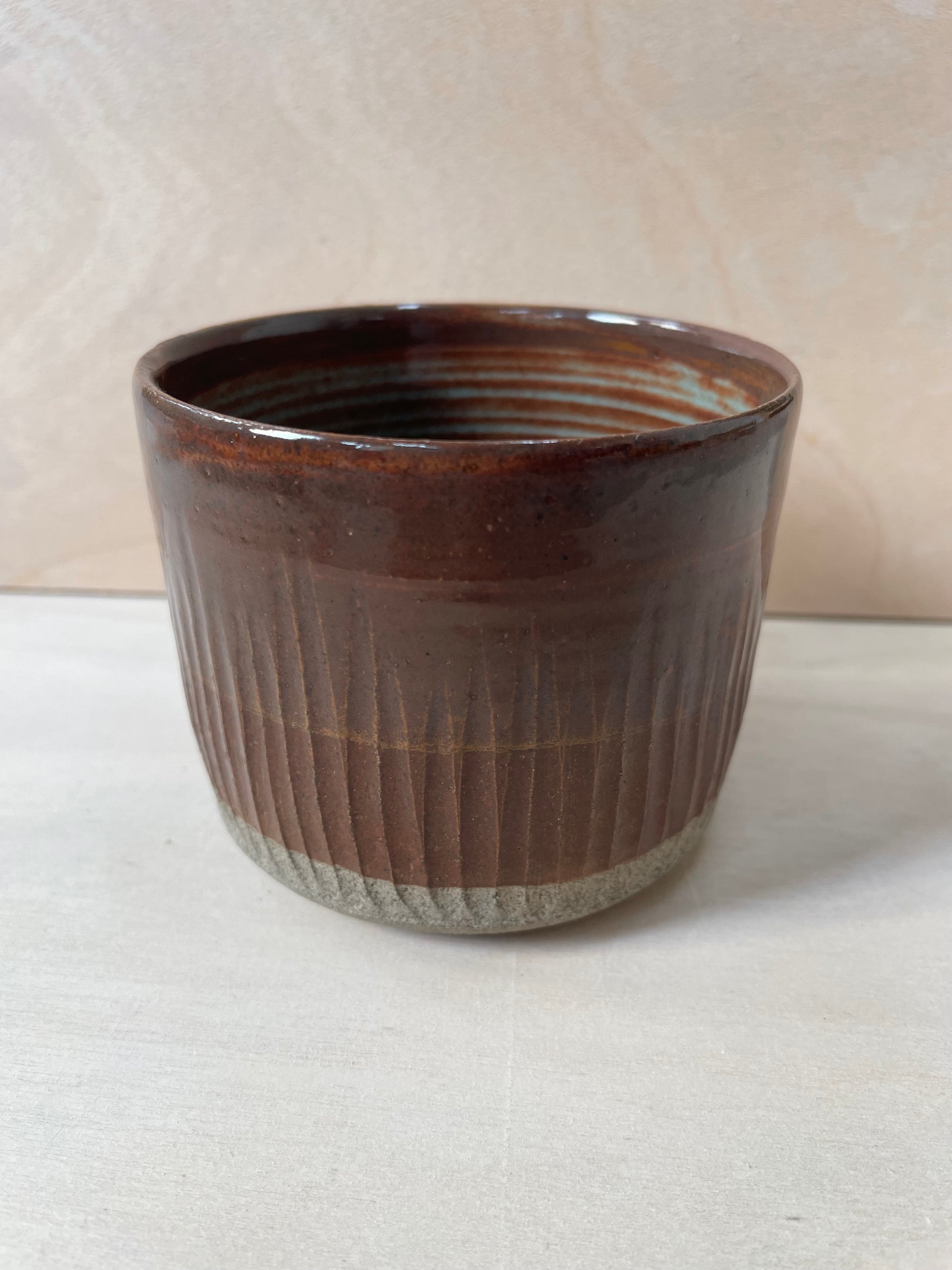 Koppen har jeg drejet i mørkere stentøjsler og den har udskæringer på ydersiden.