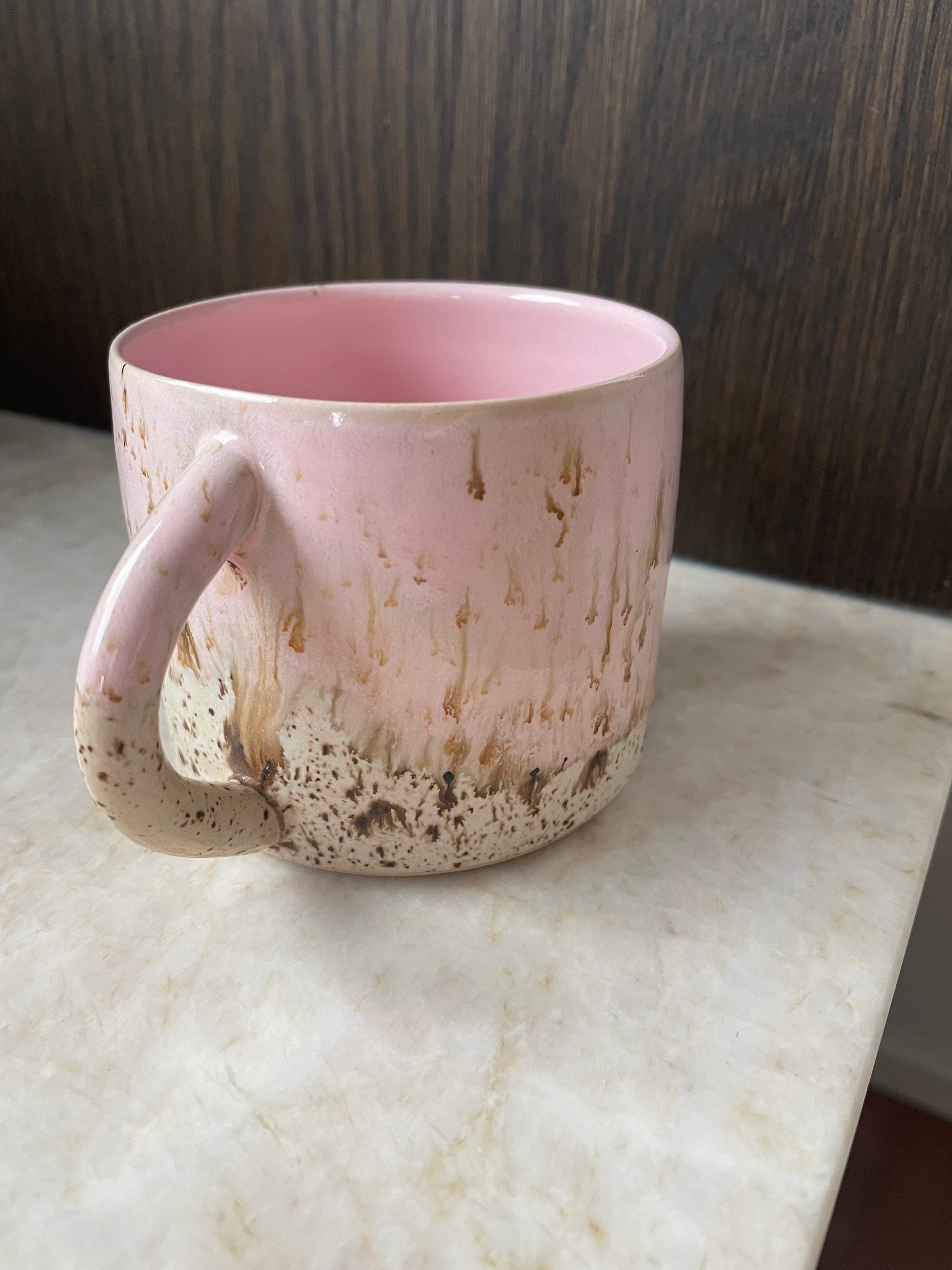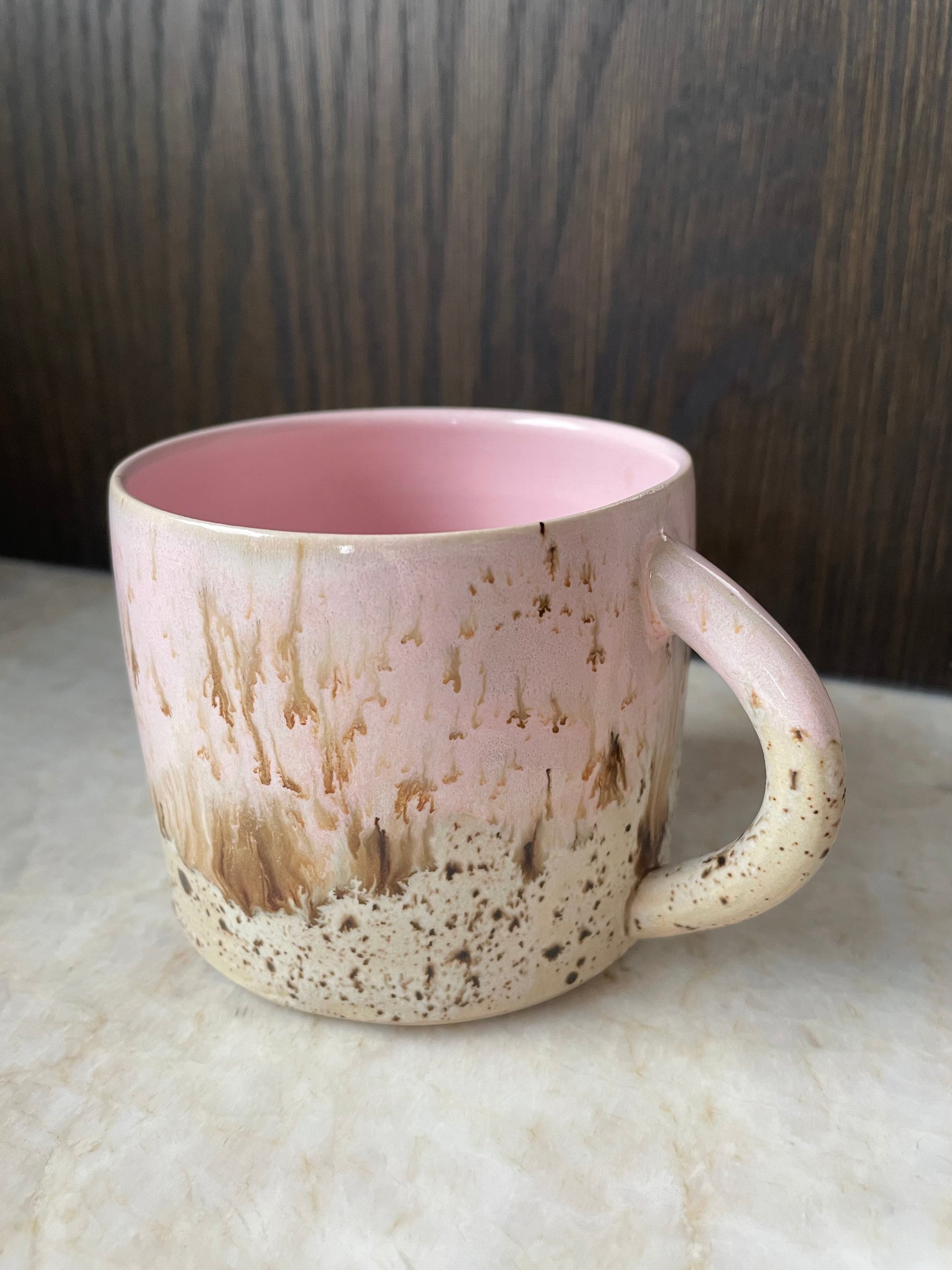Smukkeste krus med virkelig lækkert glasurspil! Kruset har jeg drejet i lys stentøjsler.